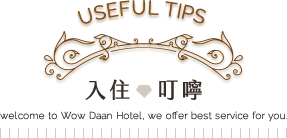 退房時間:隔日中午11:00以前。